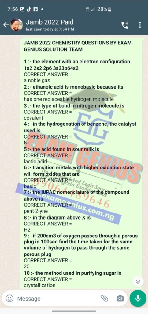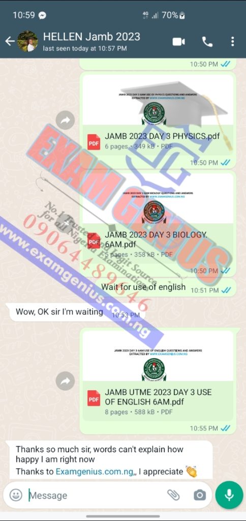 Pre-Jamb Questions and Answers Delivery Service can be delivered to you on WhatsApp as PDF / Typed Message with Images or being accessed through our Educlaz.com Jamb Questions and Answers Expo Portal