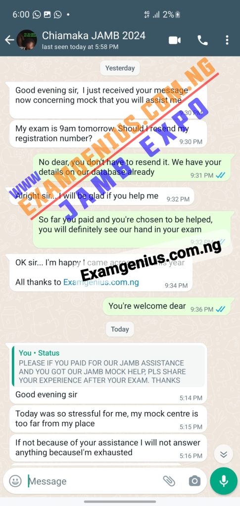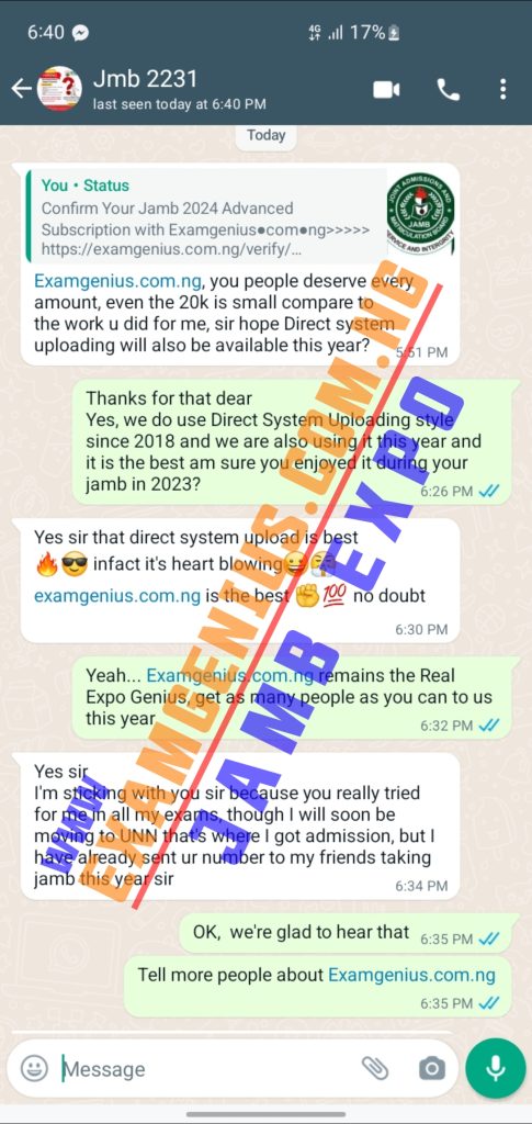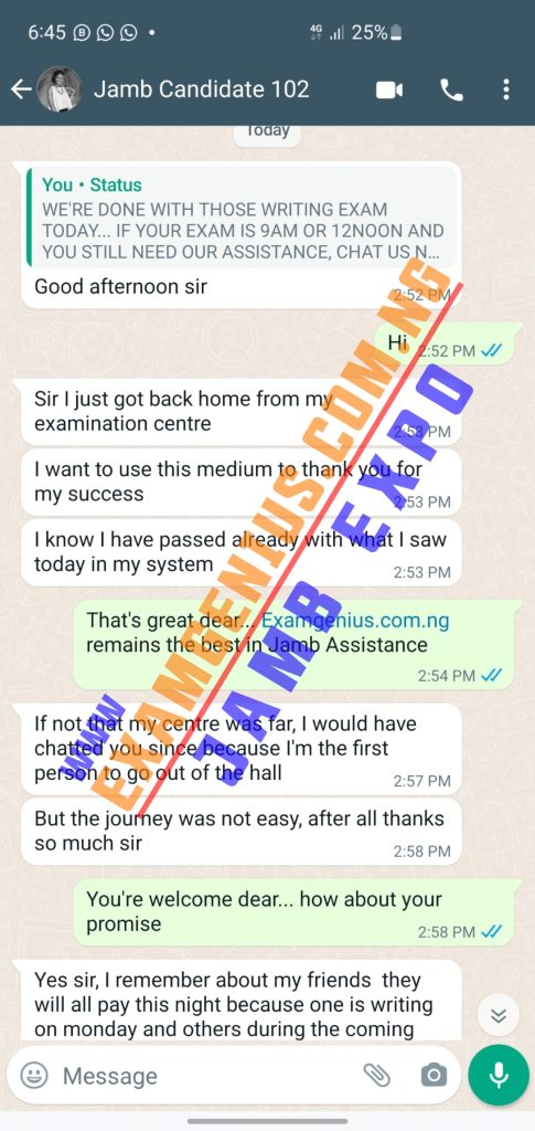Students, parents, and stakeholders, kindly be informed that Educlaz.com is simply a rebranded continuation of our former platform, Examgenius.com.ng. The same trusted team, systems, and academic support that helped thousands of candidates succeed are fully in place at Educlaz.com. As a result, some of our past success proofs, screenshots, and delivered questions and answers still carry the Examgenius.com.ng watermark or label—this is completely normal and serves as evidence of our long-standing track record. Rest assured, it is still us, now operating under a new name with improved services and a broader vision to support your academic success.