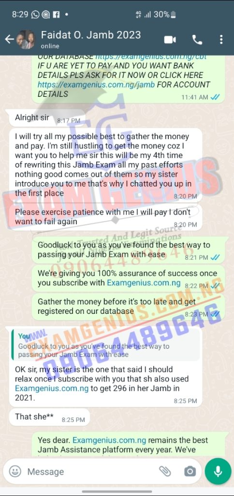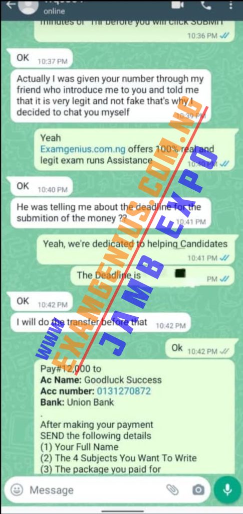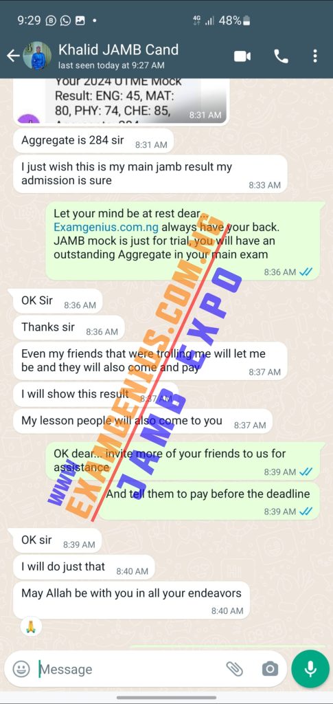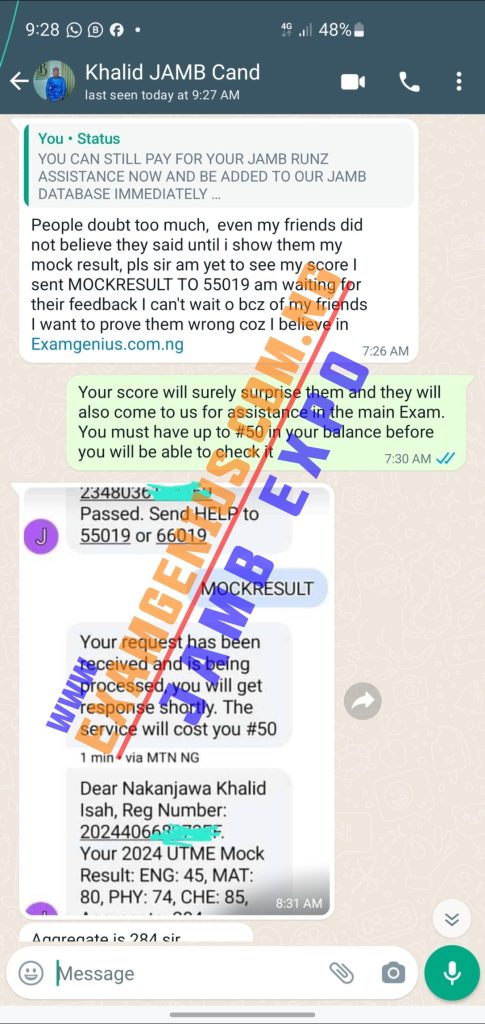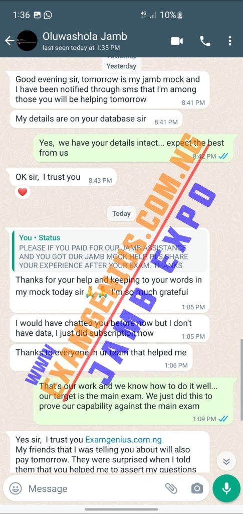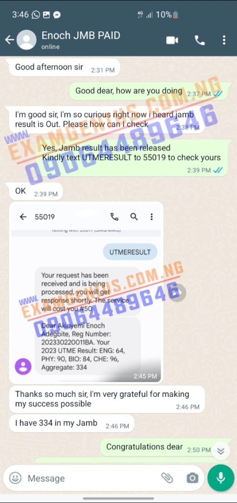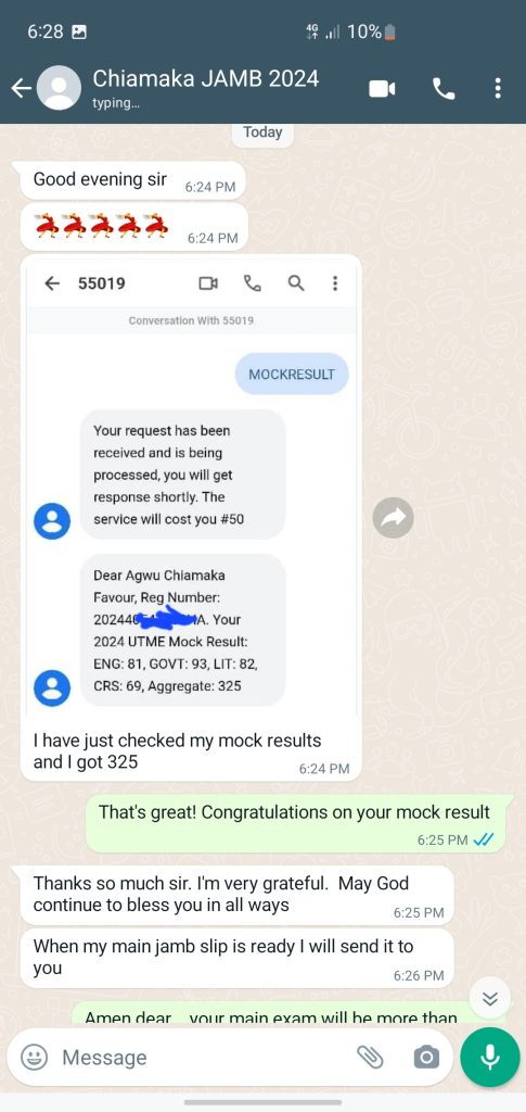 Here are some results and honest testimonies from candidates who benefited from our JAMB questions and answers, JAMB runs (runz) expo assistance: